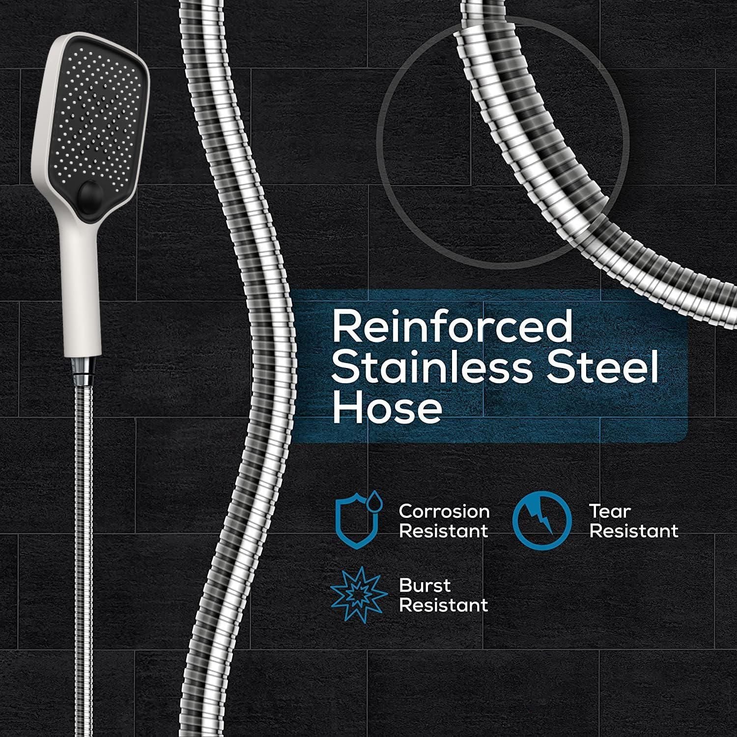 [ ??????? ???????? ]: Crafted from ABS material, square Hand shower head boasts a sleek chrome finish, ensuring durability and long-lasting performance [ ????????? ??????? ?? ???? ?????????? ]: Pamper yourself with a personalized shower thanks to our hand shower's diverse settings, including invigorating spray modes and pulse mode and a combination of rain for the ultimate relaxation. our hand shower lets you customize your shower to your mood and needs. [ ?????????? ??????????? ]: The hand shower head for bathroom is equipped with silicone nozzles that prevent limescale build-up, making it easy to maintain optimal water flow and ensuring a consistently invigorating shower experience. [ ???? ???? ????? ]: 1 Piece of Round Hand Shower with dimensions (l) 11.5 x (w) 2 x (h) 27 cm. [ ???? ???????????? ]: The handheld hand shower is easy to install and is a universal standard size so you can screw it into any shower hose as it is suitable for most standard shower hoses. [ ????????? ?? ???? ????????? ]: Prioritize your complete contentment. Our products are designed to ensure that you have the best experience possible when it comes to upgrading your home. For any questions or assistance, please feel free to contact us.